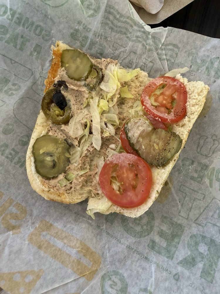 You'll love every bite of our classic tuna sandwich. 100% wild caught tuna blended with creamy mayo then topped with your choice of crisp, fresh veggies. 100% delicious. Includes sandwich, side, and drink of your choice.